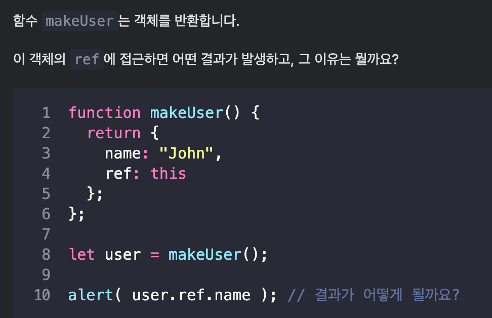 1) 객체 리터럴에서 'this' 사용하기