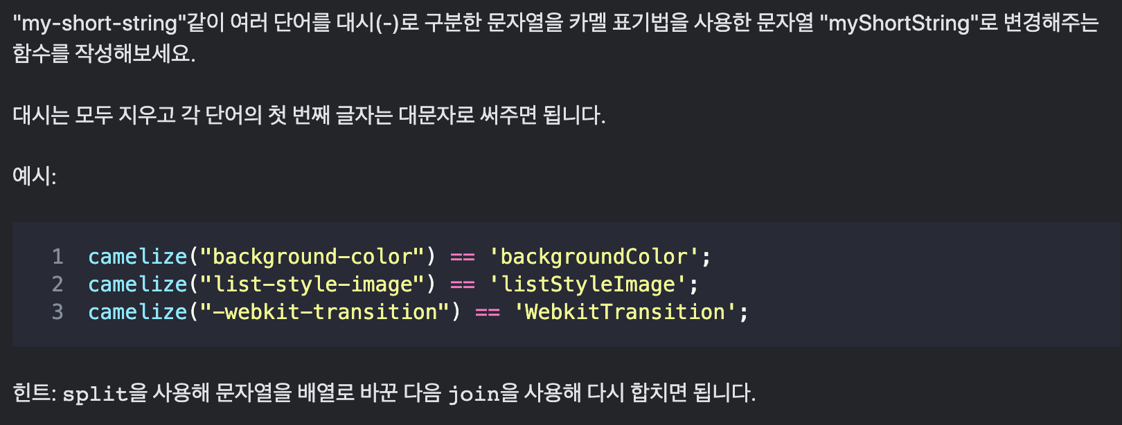 function camelize(str) {
