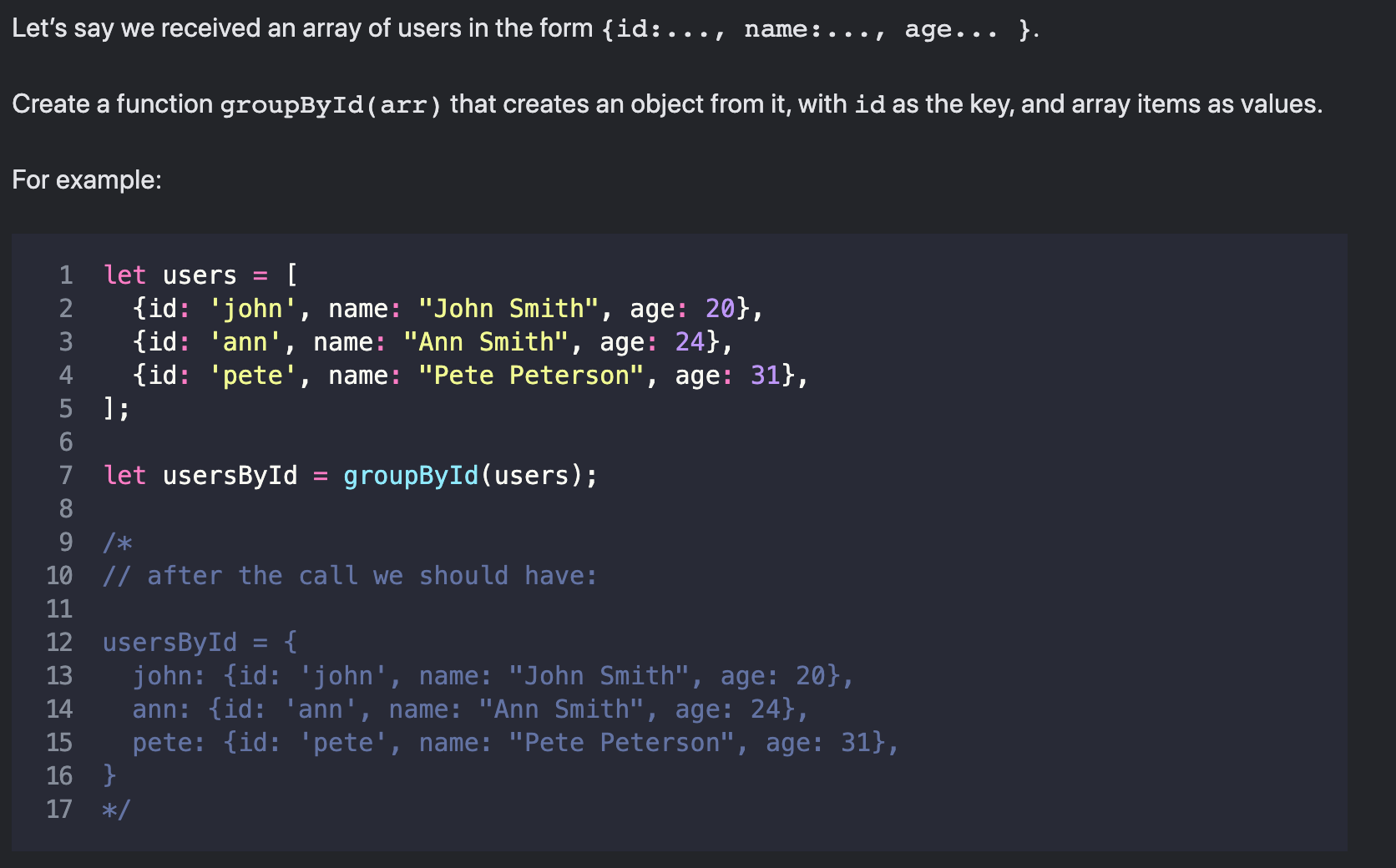 function groupById(users) {