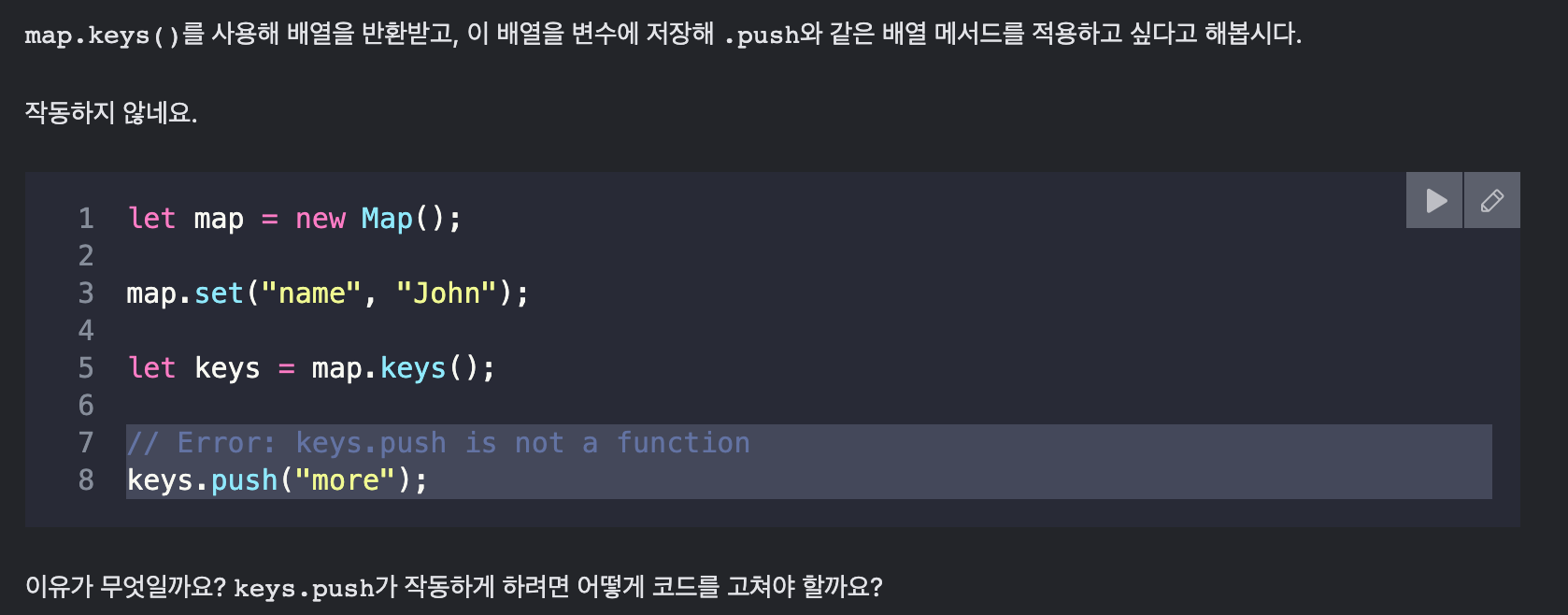 -> Map.keys()는 배열이 아닌 이터러블 객체를 반환하므로