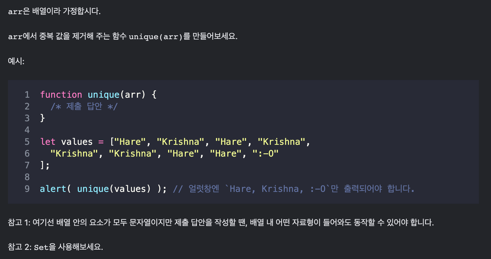 1) 배열에서 중복 요소 제거하기
