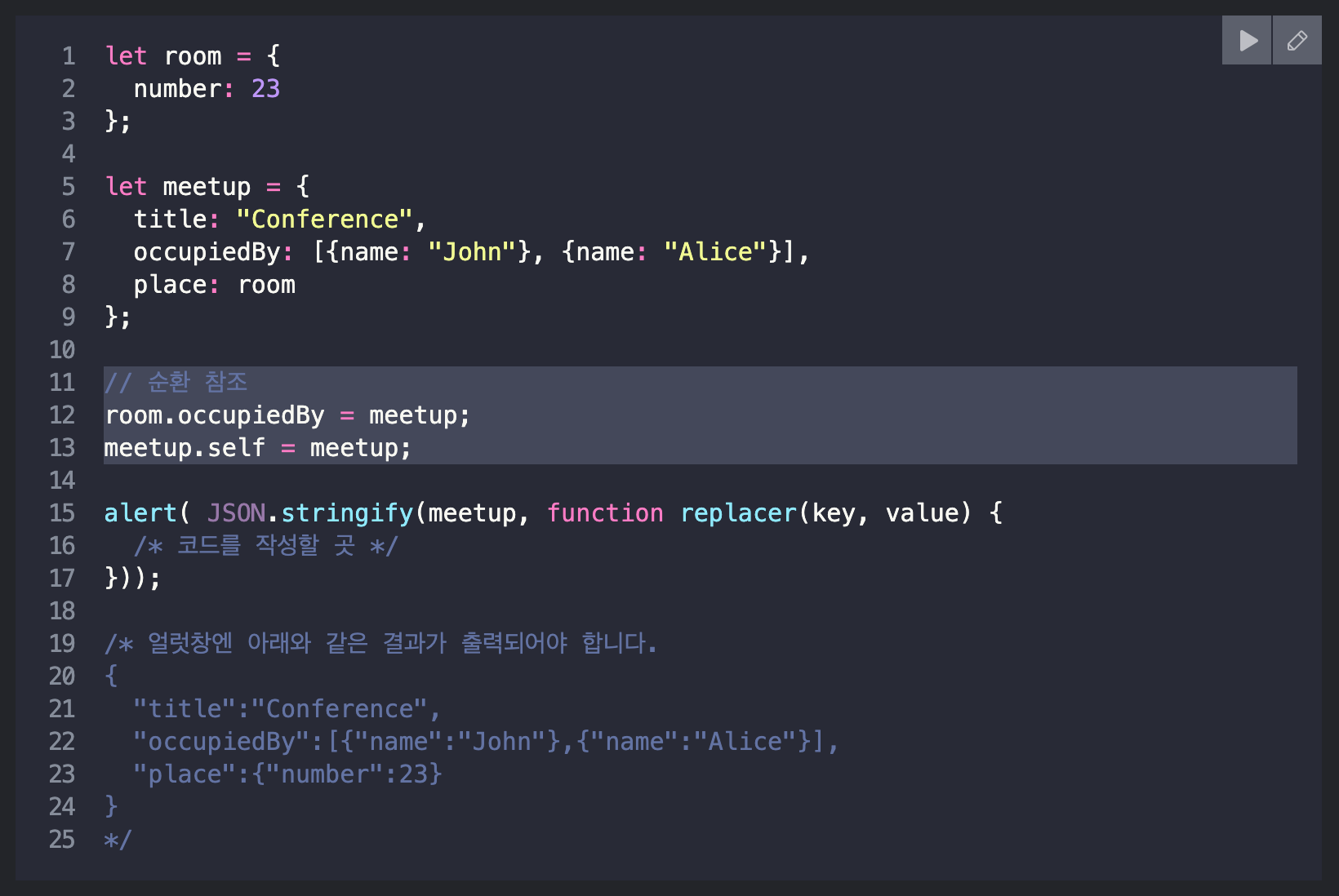JSON.stringify - 객체를 JSON으로 바꿔줌