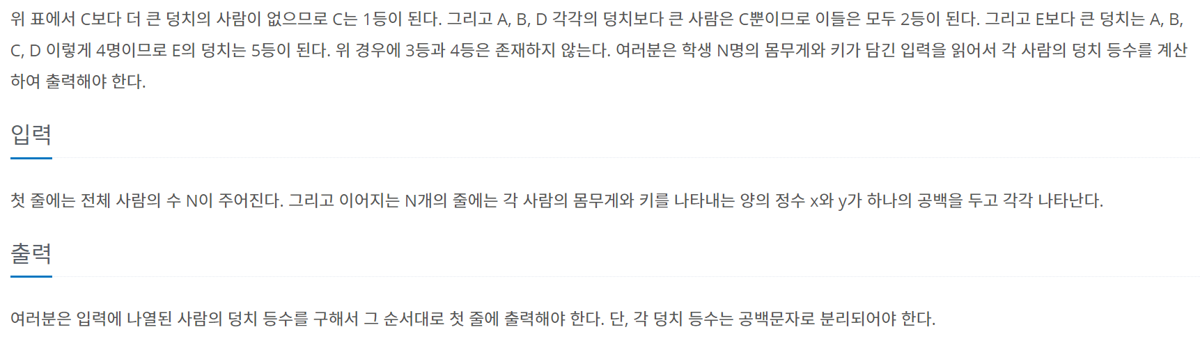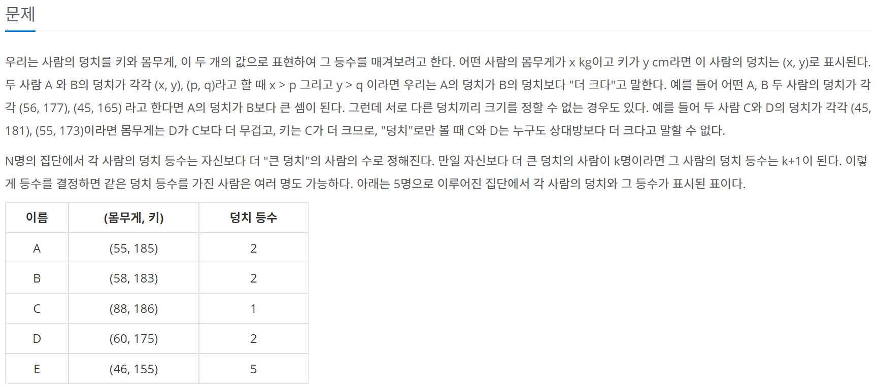 7568번: 덩치