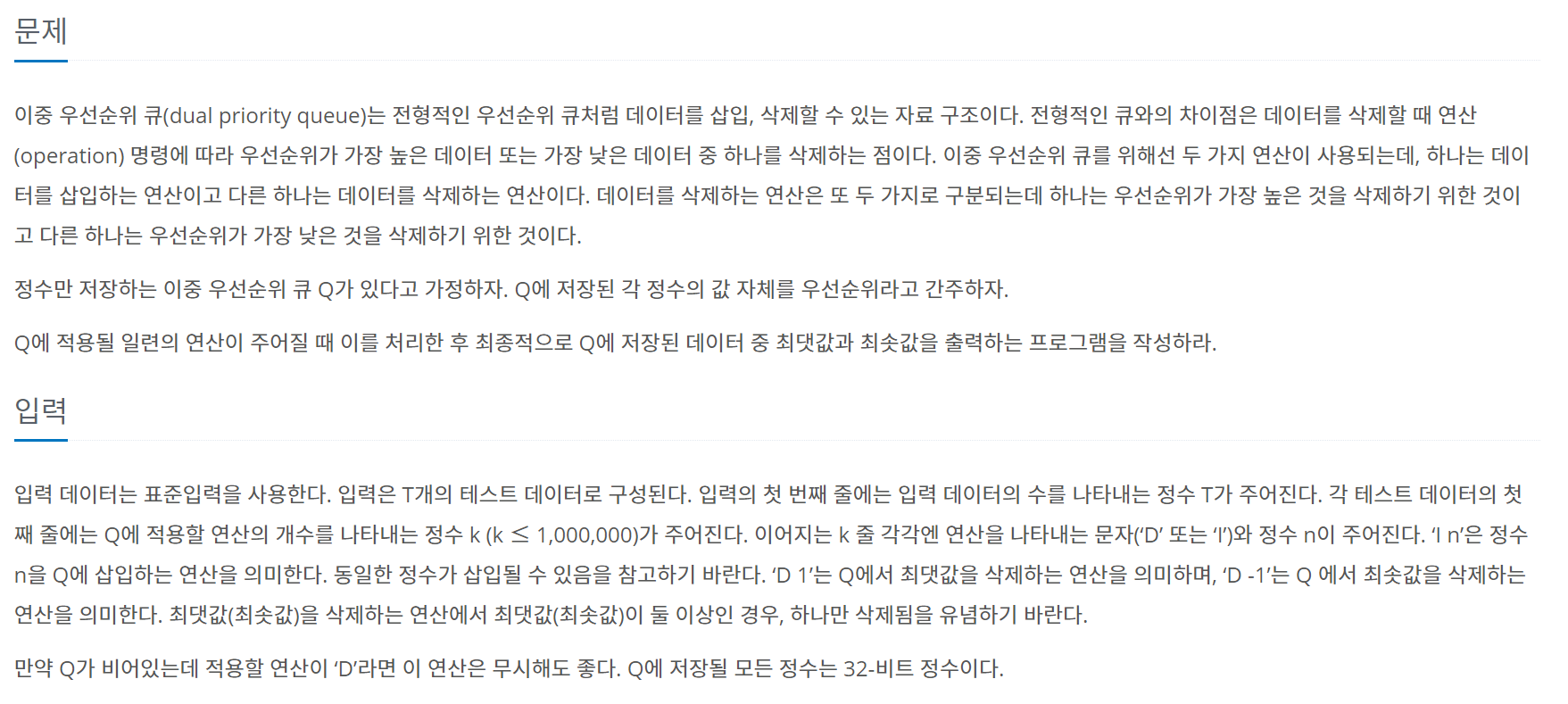 처음에 이중 우선순위 큐라는 제목을 보고