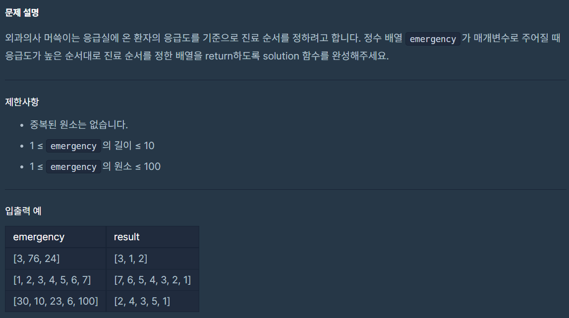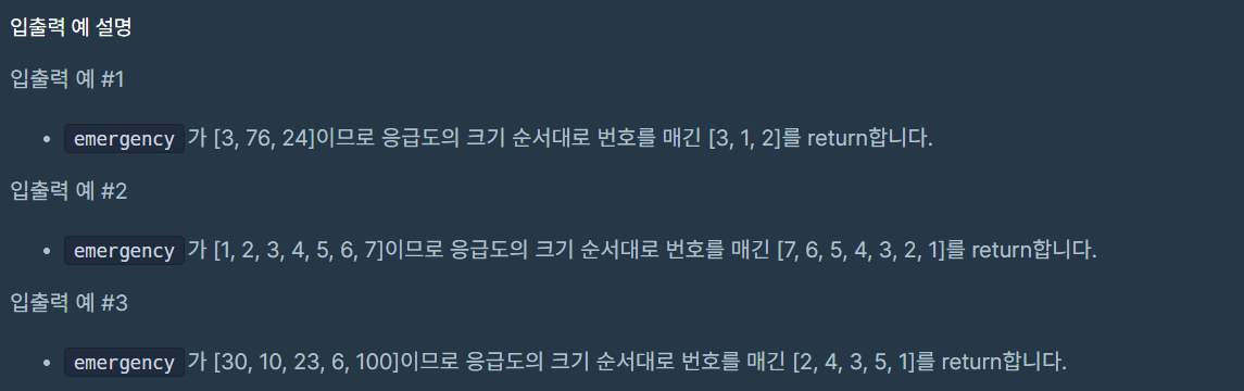 가장 먼저 입력받은 emergency를 복사하여 새로운 배열인 arr를 생성해주었다.