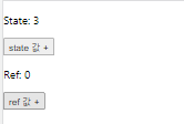 state + 버튼과 ref + 버튼을 3번씩 클릭했는데,