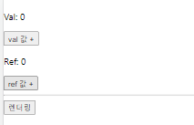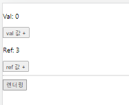 위 코드에서 val 값 + 버튼과 ref 값 + 버튼을 3번씩 누르면