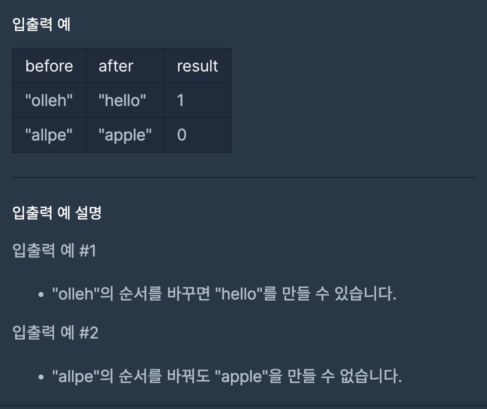 문자열 before의 요소와 개수를 세기 위해 해시 테이블인 dict를 사용했다.