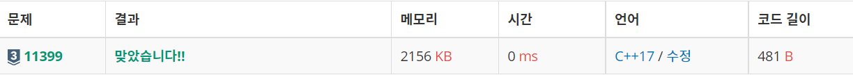 첫째 줄에 사람의 수 N(1 ≤ N ≤ 1,000)이 주어진다. 둘째 줄에는 각 사람이 돈을 인출하는데 걸리는 시간 Pi가 주어진다. (1 ≤ Pi ≤ 1,000)