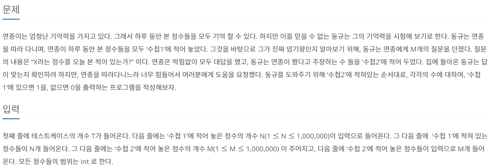 cin >> m; // 수첩 2에 적어 놓은 정수의 개수