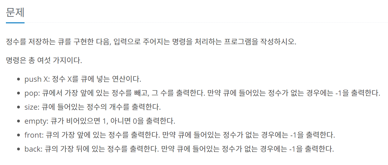 여기서 주의할 점은 문제에 나온 pop 명령어가 큐에서 가장 앞에 있는 정수를 빼고