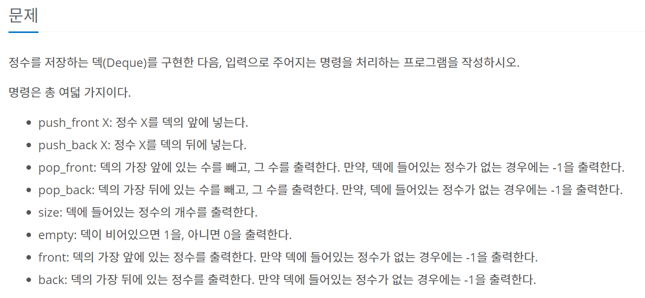 여기서 주의할 점은 문제에 나온 pop_front와 pop_back 명령어가